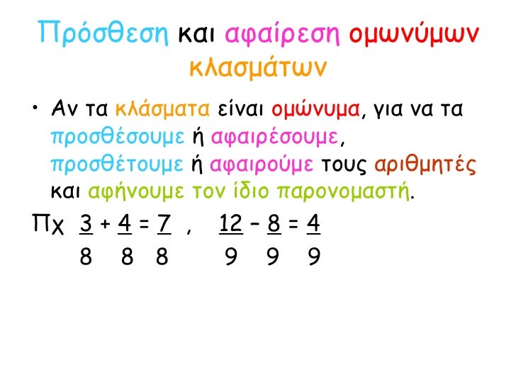 Πρόσθεση & αφαίρεση ομώνυμων κλασμάτων (Α. Χαραλάμπους)